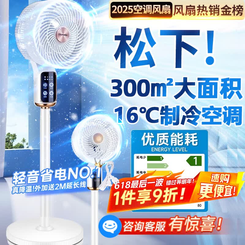 NIYEVN【300平全屋降温丨秒降16°C】空调扇制冷风扇落地扇电风扇静音卧室超静音一级能效空气循环扇家用 【空调级冷风】全域降温省电-静音恒冷-省电 排名前十品牌丨2026年新款丨全屋送风制冷