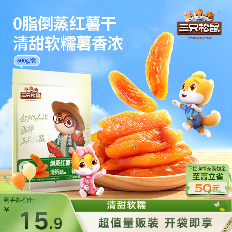 三只松鼠倒蒸红薯干500g 番薯蜜薯蜜饯果干代餐低脂零食小吃休闲食品