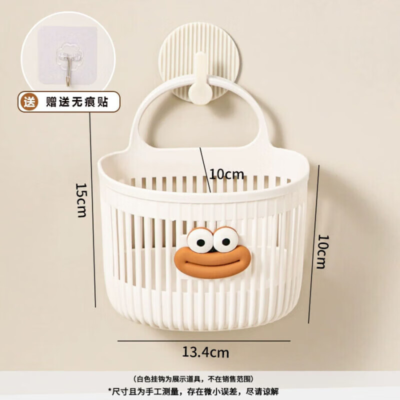 可爱壁挂式首饰盒收纳多功能厨房浴室小挂篮免打孔挂墙首饰盒小号 白色大嘴挂壁收纳盒