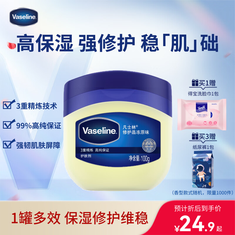 凡士林[口碑第一]修护晶冻100g防干裂夜间修护敏肌适用(新老包装随机)