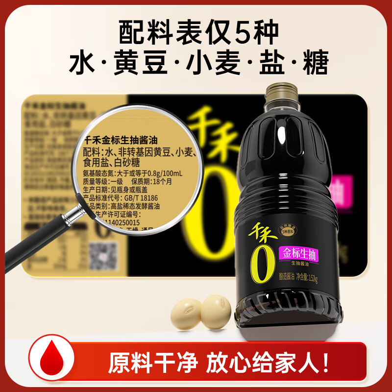 千禾金标生抽 1.52kg【0添加一级生抽】酱油炒菜家用调料提鲜家用大桶