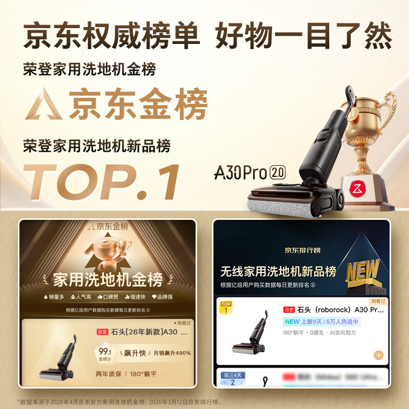 石头A30 Pro2.0洗地机【AI全向助力】25kPa吸力0缠毛95℃除菌超薄躺平自动清洗吸拖一体扫地机机器人